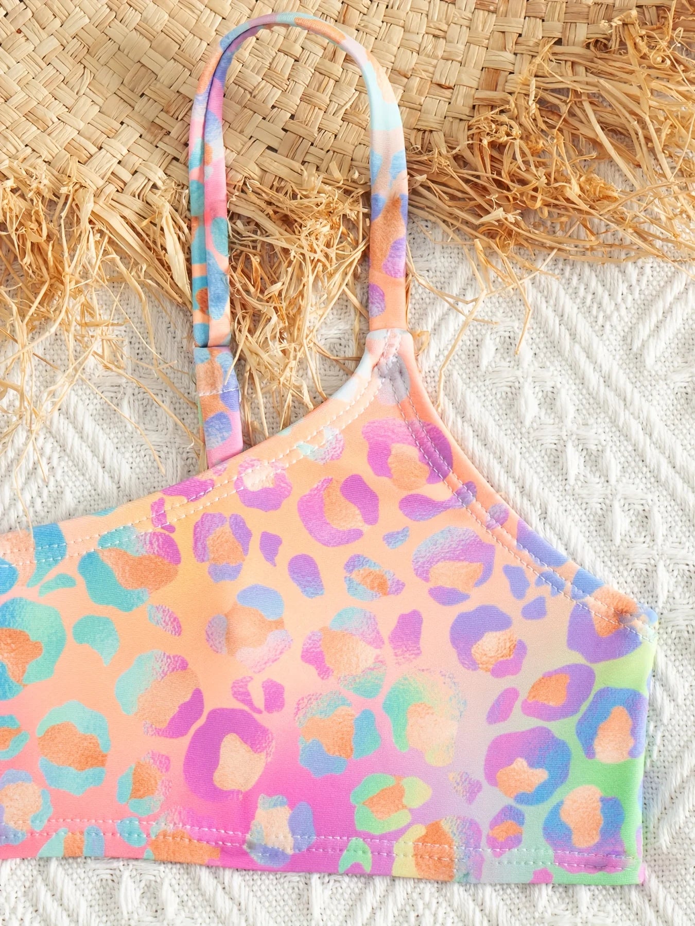 Bright Leopard Print Bikini Swimsuit for Teen Girls Summer Beachwear Two Piece Swimwear