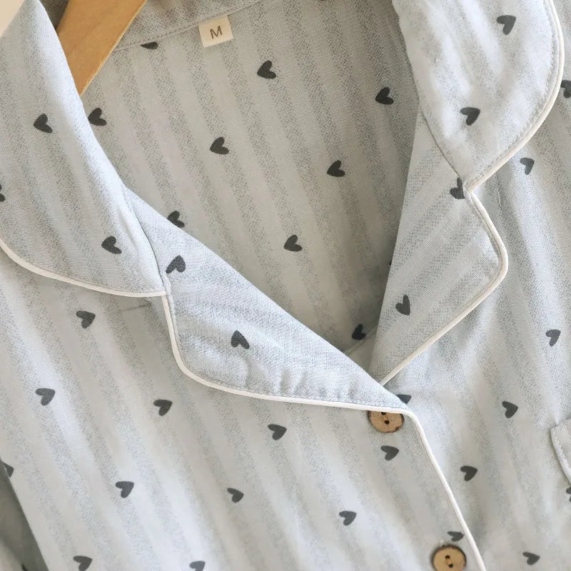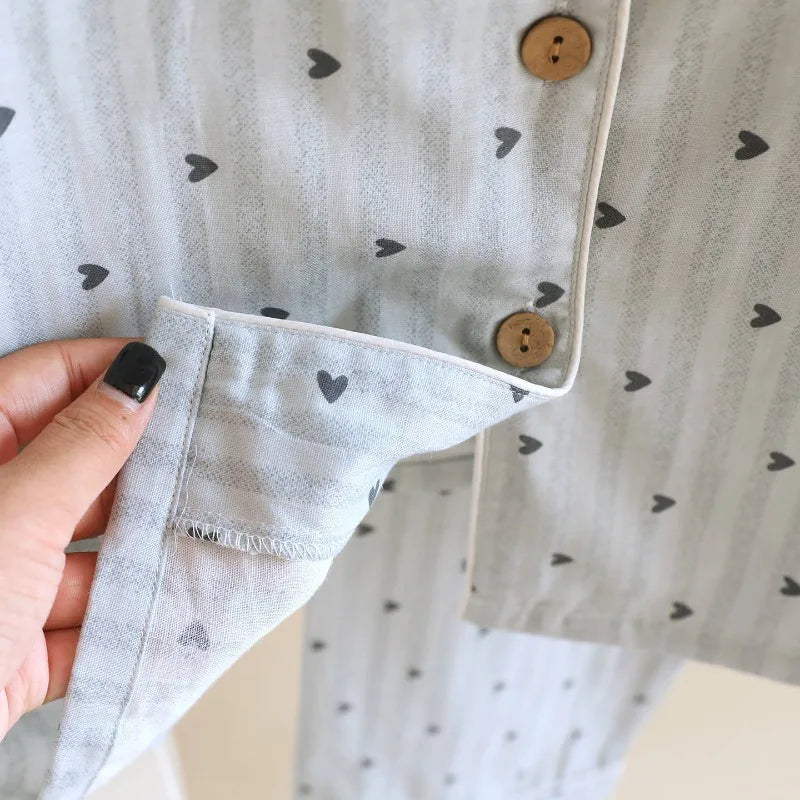 2025 Spring and Autumn Women's Pajama Set 100% Cotton Gauze Vertical Strip Love Long Sleeve Two piece Home Clothing Set 2025 Spring and Autumn Women's Pajama Set 100% Cotton Gauze Vertical Strip Love Long Sleeve Two piece Home Clothing Set