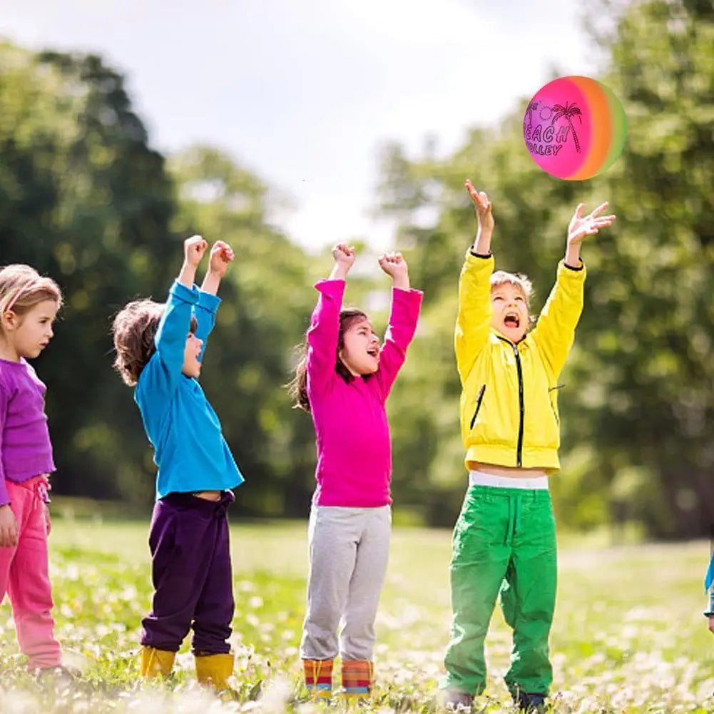 1. Rainbow Design: This 9-inch inflatable toy ball has a vibrant rainbow color scheme that adds fun and excitement to any game sports activity.