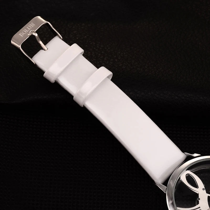 Music Shape Watch Round Dial Elegant Black White Leather Casual Watches Hollow Style Women Fashion Wristwatch loading