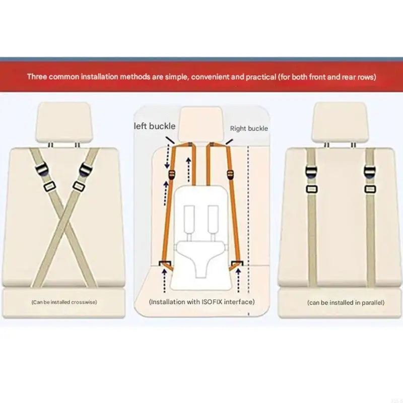 Portable kid car with lightweight linen fabric ensures secure travel and breathable for kids during long trips, featuring an innovative anti slip systems for general vehicle compatibility.