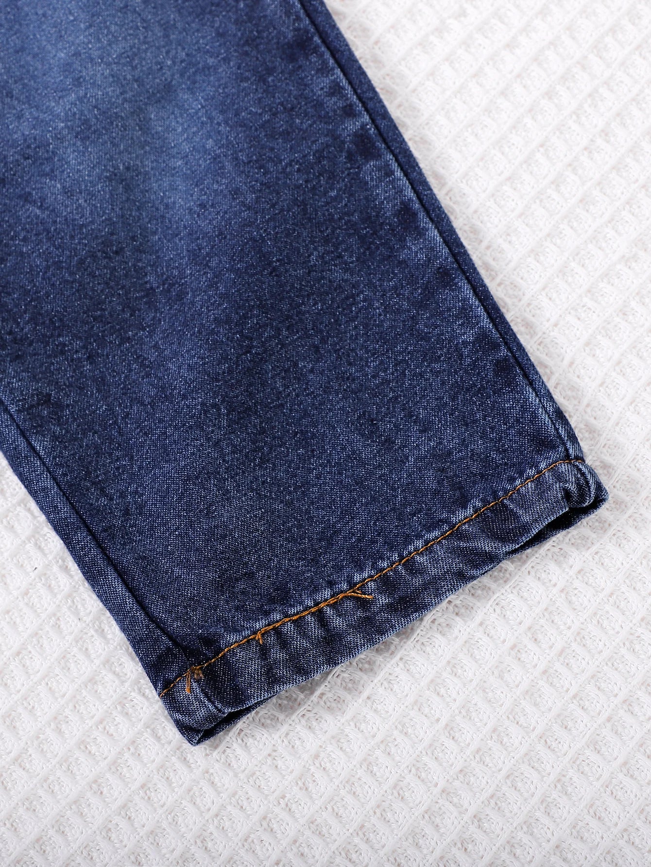 Unisex Kids Casual Striped Note Long Sleeve Top with Denim Pants Two-Piece Set for Boys And Girls